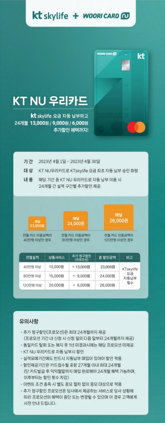 4월에 카드 발급후 요금 자동 납부를 등록하면 프로모션 적용이 된다.